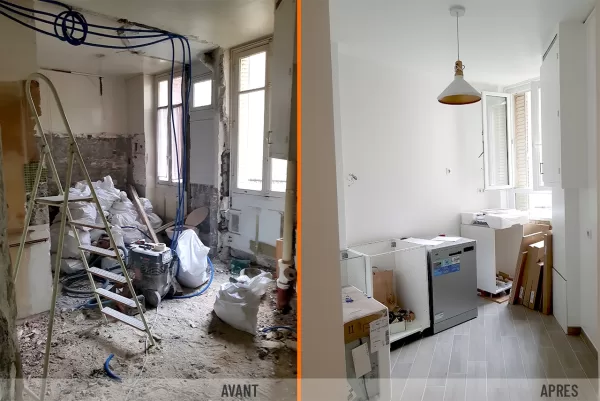 - Démolition complète de la cuisine et de la salle de bain