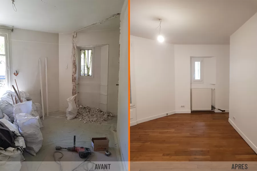 - Démolition des cloisons pour agrandir le salon