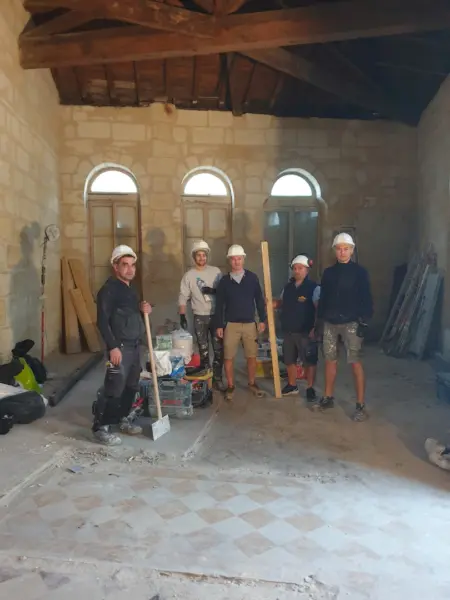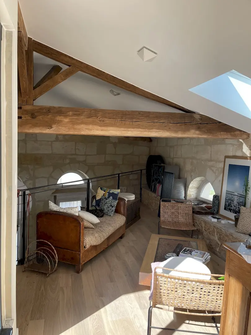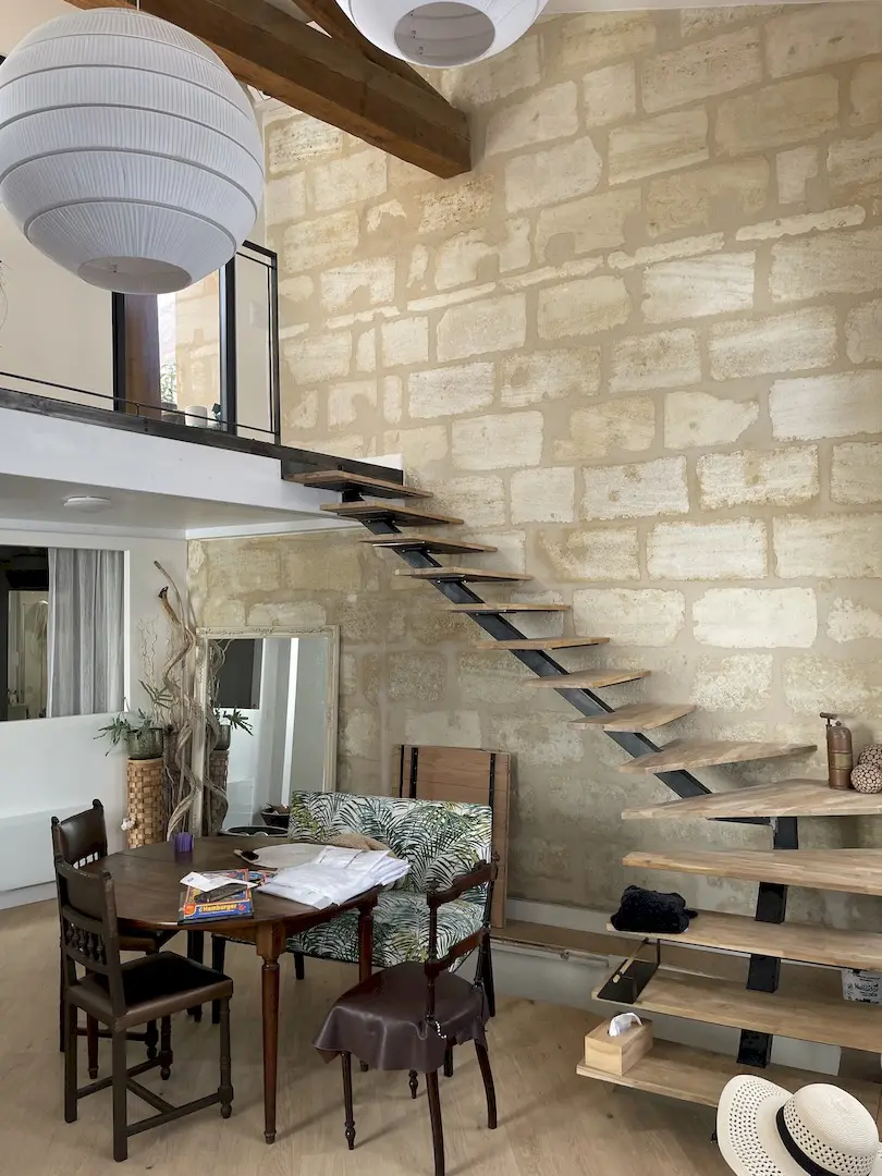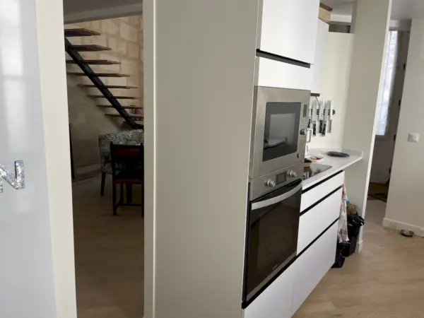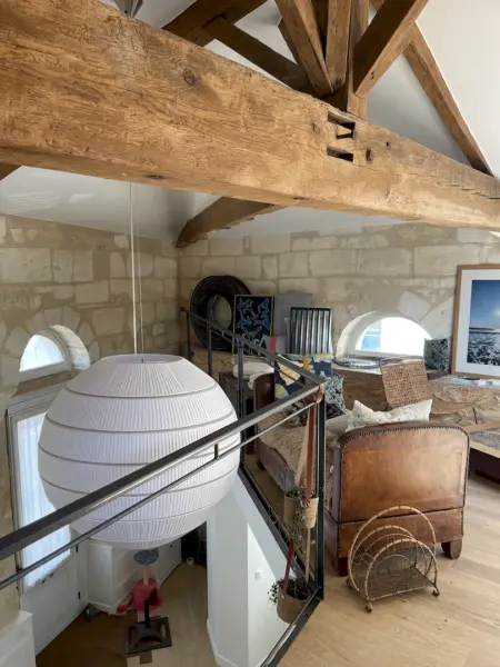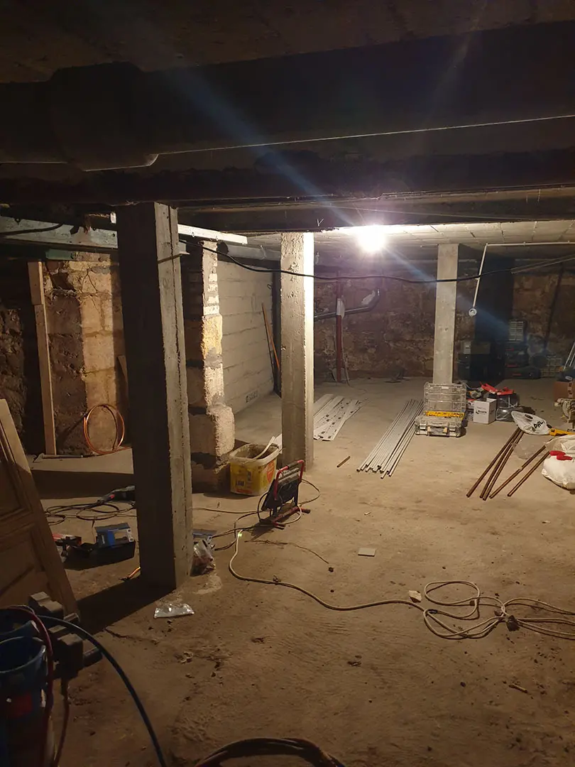 - Maçonnerie: Ouverture pour escalier vers la cave. Création d’une mezzanine en bois.