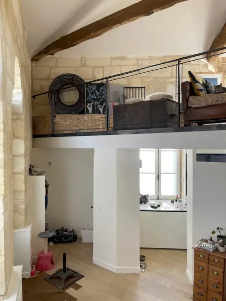 Rénovation 67 m2 au rez-de-chaussée. Création d’une mezzanine d’environ 33 m2 (chambre, salle de bain, espace détente) avec une terrasse d’environ 12 m2