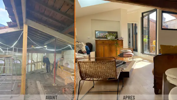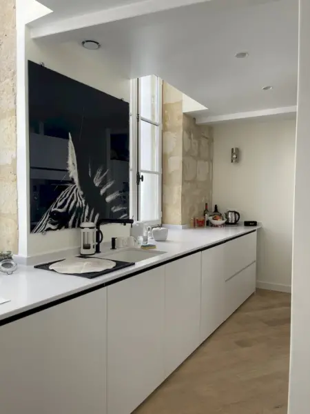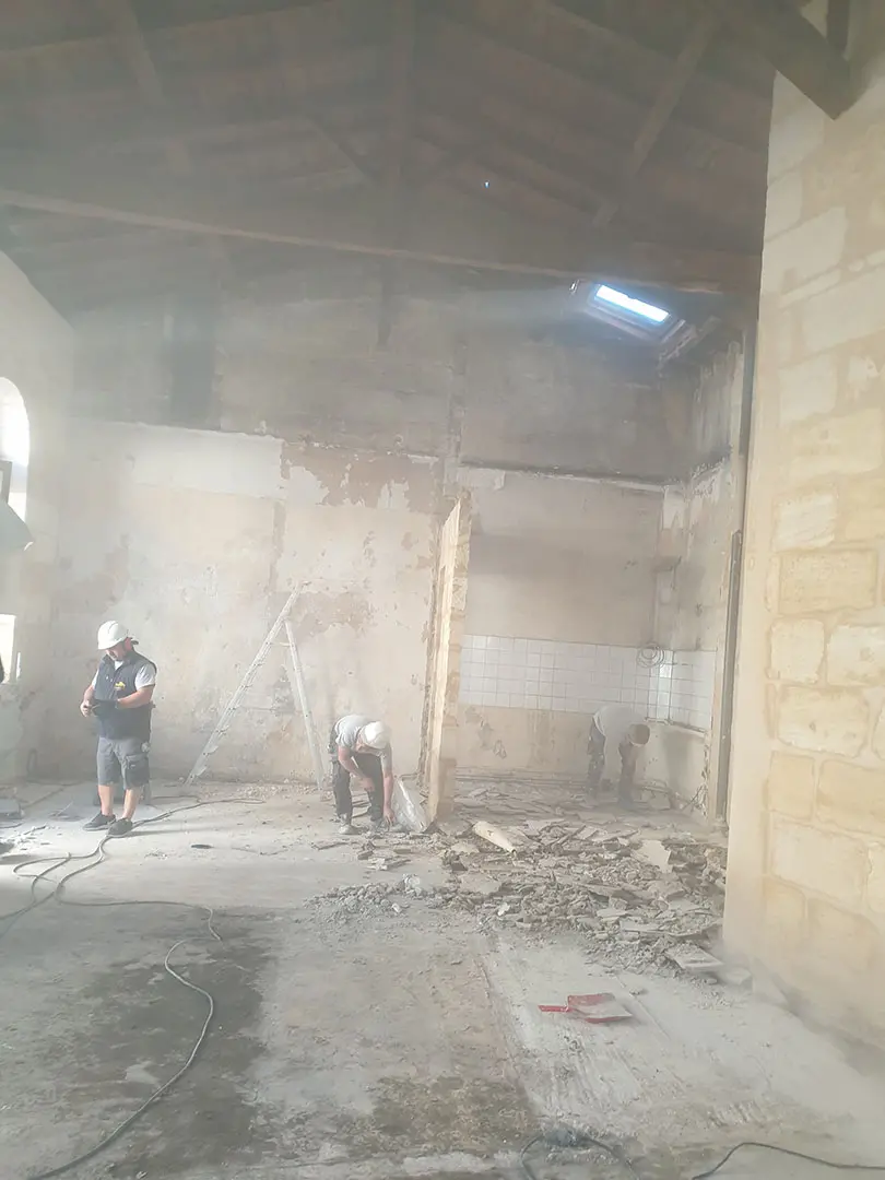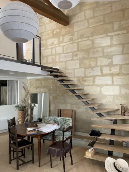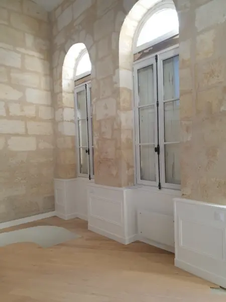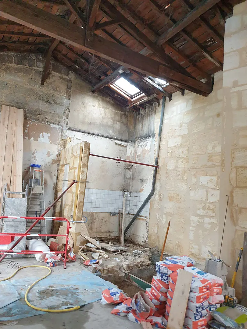 Rénovation totale d’une maison de ville à Bordeaux, Rue Sullivan. Création d’une mezzanine d’environ 33 m2 avec une nouvelle chambre, salle de bain, espace détente et terrasse (ouverture dans la couverture). Rénovation de rez-de-chaussée de 67 m2. Création d’une chambre, cuisine, salle de bain, WC et séjour. Overture de rez-de-chaussée vers le sous-sol avec un escalier maçonné. Mise en place de piliers de soutènement au sous-sol.