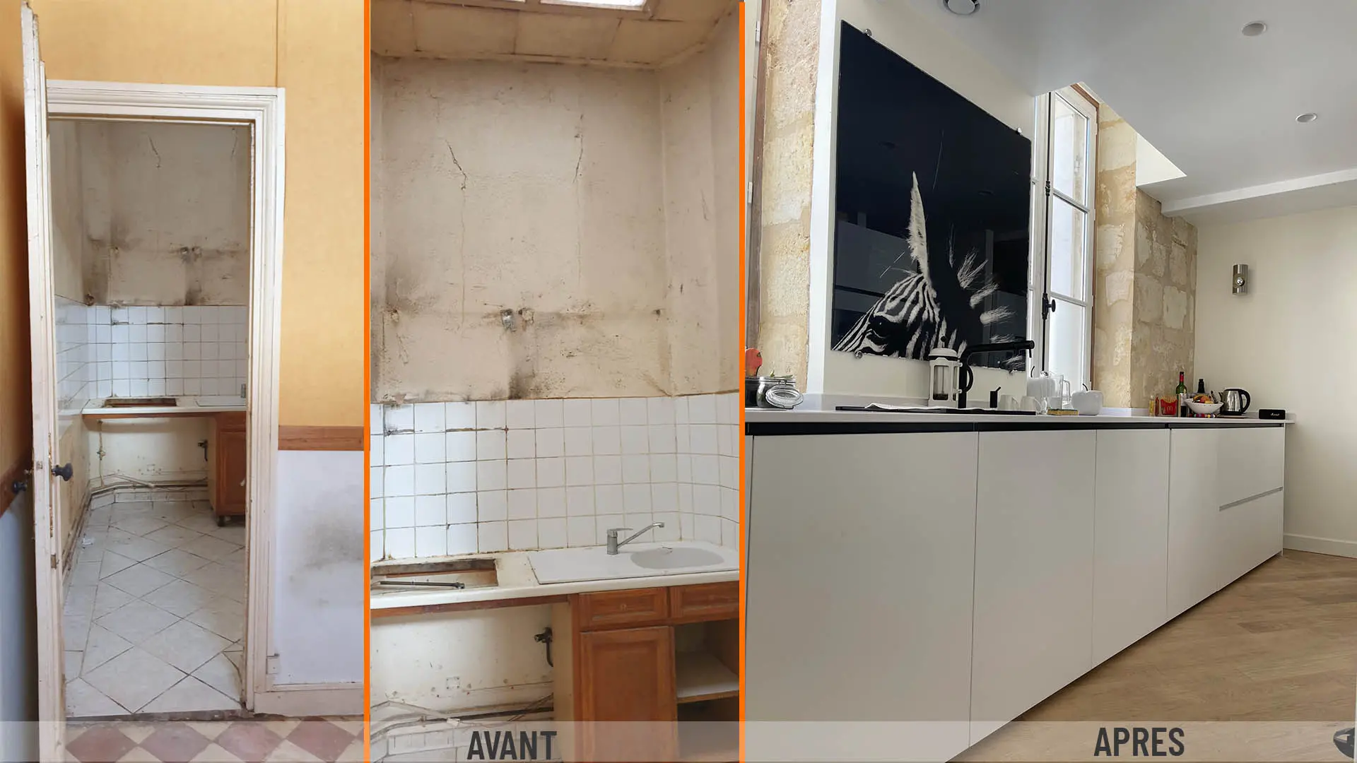 - Plomberie: Rénovation complète plomberie : évacuation, alimentation EC/EF pour 2 salles de bains et une cuisine