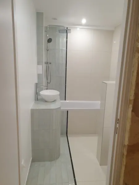 - Revêtement murs: Mise en place de l’enduit. Mise en place de la peinture. Pose de faïence